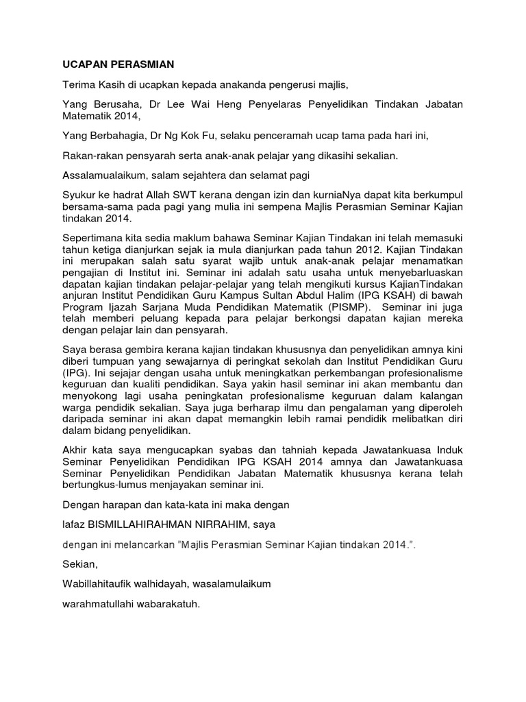 Teks Ucapan Perasmian Dalam Bahasa Inggris Arturodsx